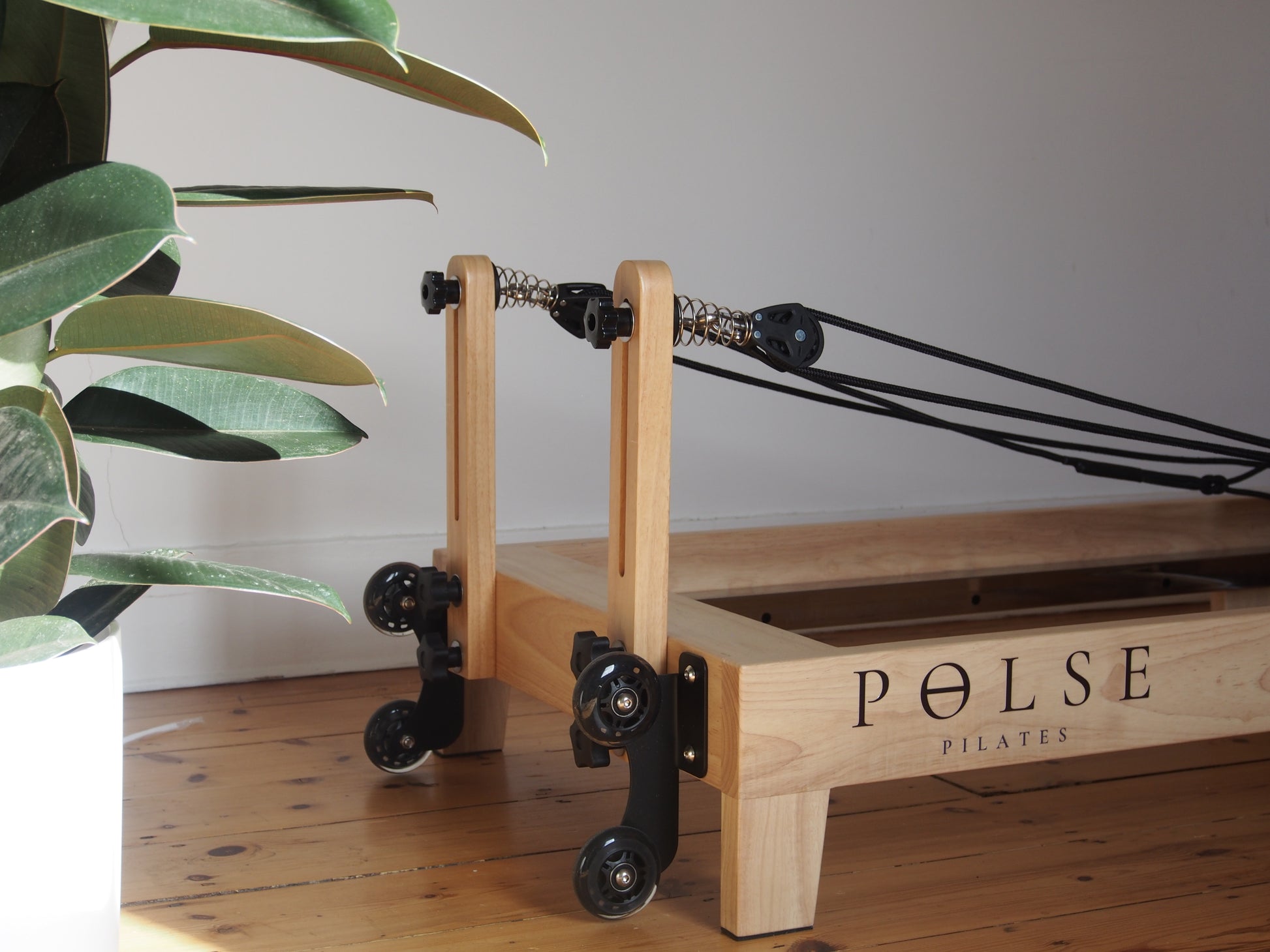 Get the full Pilates studio experience at home. This foldable reformer is designed for real homes and real spaces – it folds away completely when you're done. Made from premium oakwood with luxurious microfibre leather bed, it's as beautiful as it is functional.